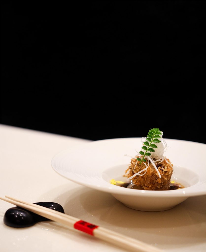 Crispy, juicy deep-fried japanese wagyu beef ball with winter melon, topped with ankake sauce.